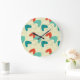 Reloj de pared acrílico moderno de mediados del siglo. Patrón retro. Colores rojos y turquesas.