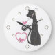 Un gatito moderno y tonto sonriendo con corazones y pájaros - un dibujo para los amantes del gato en relojes redondos o cuadrados