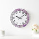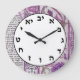 Redondo Grande Reloj número hebreo letras judías púrpura cosecha