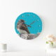 Redondo Grande Reloj - Pájaro blanco y negro sobre la valla