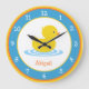 Reloj redondo de pato de goma adorable azul y amarillo.