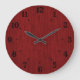 Este reloj presenta un diseño de fondo rústico que representa un grano de madera realista en un tono de madera teñida de rojo intenso. Las horas están marcadas en números negros en una fuente occidental y con pequeñas marcas negras. Este reloj es personalizable, por lo que puede cambiar el tipo de letra, eliminar los números, eliminar las líneas, agregar su propio texto o hacer cualquier otro cambio que desee para un reloj único. Utilice este reloj como está o personalizar para un regalo de personalizado.