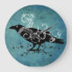 Redondo Grande Reloj Verde azulado de pared Raven y Swirls