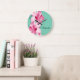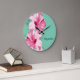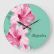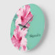 Redondo Grande Reloj Verde azulado Tropical Rosa Hibiscus