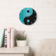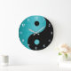 Redondo Grande Reloj Yin Yang en turquesa y negro