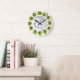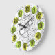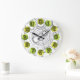 Este reloj fresco tiene un diseño moderno de bolas de picnic verde lima en un diseño abstracto de línea negra sobre un fondo blanco. Es un regalo perfecto para los aficionados al pickleball.