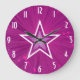Diseño moderno con una estrella "brillante" rosa y blanca sobre un fondo "brillante". Reloj de pared con un diseño de personalizable para que puedas personalizar con tu propio texto, imágenes e ideas. Tenga en cuenta que se trata de una imagen impresa creada con fotografías originales y técnicas digitales, que no brilla ni contiene chispas reales.