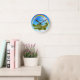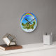 Reloj personalizado colorido con los números para los niños con un arco iris bonito y las burbujas, y un pequeños cocodrilo/cocodrilo lindos del bebé. ¡Los niños amarán este pequeño carácter animal adorable! Personalice o quite el texto - porciones de fuentes y de colores para elegir de.