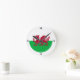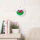 Este reloj de pared muestra la bandera de Gales, Baner Cymru, con el Dragón Rojo, Y Ddraig Goch, en un campo de verde y blanco en el centro de la cara del reloj. El reloj es personalizable. Utilice la opción Elija su estilo para elegir el tamaño (mediano o grande) y la forma (redondeado o cuadrado).