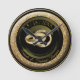 Un lujoso botón brillante de oro con dos anillos bodas en un dramático reloj de pared de fondo negro como un momento boda