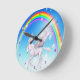 Reloj de arte colorido y mágico de fantasía para chicas y mujeres con arcoiris y burbujas de bonito y un hermoso unicornio volador / pegasus / pegasi con alas.