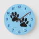 Dibujo de perros de dibujos animados con dibujos en negro sobre fondo blanco. Los relojes de pared decorativos para casas y negocios como tiendas de mascotas. Versión azul bebé. Idea de regalo para los amantes del perro.