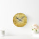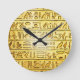 Reloj amarillo de pared con antiguos jeroglíficos grabados en piedra. Una adición fresca a cualquier pared.