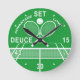 Green de césped, Jugadores de tenis, Reloj de tenis. Este divertido tenista juega al tenis y el reloj tiene un tema de partidos de tenis. Tiene un diseño de cancha de tenis con una red de tenis y encima hay dos raquetas de tenis cruzadas y una pelota de tenis. En lugar de números, tiene una puntuación de tenis alrededor del dial: Amor, 15, 30, 40, Deuce, Advantage y Set, lo que le da un verdadero sentimiento de partido de tenis. Este elegante reloj temático de tenis es el perfecto para los jugadores de tenis y los aficionados al tenis. Un regalo de tenis de alta puntuación que cualquier jugador de tenis apreciará y disfrutará de sus ventajas!
