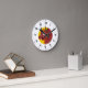 Reloj con ilustracion de cabeza de un lindo dragón rojo en círculo amarillo, diseño de cuento de hadas para niños por Maxiharmonía