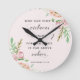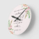 ¡Un bello recordatorio e inspiración para las mujeres virtuosas de tu vida! Este reloj presenta flores blandas en un fondo rosado y la escritura "¿Quién puede encontrar una mujer virtuosa? Porque su precio está muy por encima de los rubíes". Proverbios 31:10 (KJV)