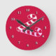 La cara del reloj es roja con números blancos tridimensionales. En el centro hay un bastón de caramelo blanco a rayas con sombra rosa. **Parte de un conjunto coordinado - BKM1a.