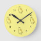 Dibujo de búho.Esquema de búho con alas amarillas oscuras. La imagen se encuentra en las posiciones 12, 3, 6 y 9. Fondo amarillo claro.