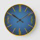 Reloj clásico de Office en fondo azul de marco dorado - Un hermoso reloj de pared retro que es único por su decoración.