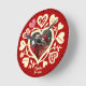Redondo Mediano Reloj con corazón de foto en crema roja personaliz