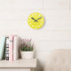 Diseño acogedor inspirado en la gaseosa gaseosa con manchas en tonos amarillos limoneros sobre un fondo de dos tonos. Reloj de pared con un diseño de personalizable para que puedas personalizar con tu propio texto, imágenes e ideas. Hay otras opciones de estilo disponibles. Imagen impresa creada mediante técnicas digitales por Jess perry.