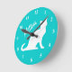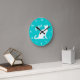 Redondo Mediano Reloj de gato turquesa con nombre de mascota perso
