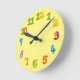 Adorable cara de reloj amarillo con "animales" hechos de números con ojos que deleitarán a tus hijos. Ideal para una habitación o una sala de juegos para niños.