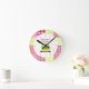 Un reloj que ofrece un ilustracion de una estufa verde en el centro. El fondo es modelo inspirado Madras de la tela escocesa. Los números son rosados y verdes. Personalice con su nombre.
