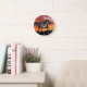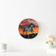 Caballo de pintura salvaje con un impresionante reloj de pared de puesta de sol
