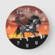 Caballo de pintura salvaje con un impresionante reloj de pared de puesta de sol