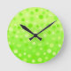 Diseño acogedor inspirado en el pop gaseoso de soda, con manchas en tonos verde lima sobre un fondo de dos tonos. Reloj de pared con un diseño de personalizable para que puedas personalizar con tu propio texto, imágenes e ideas. Hay otras opciones de estilo disponibles. Imagen impresa creada mediante técnicas digitales por Jess perry.