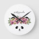 Un oso panda lindo con flores en el pelo en este reloj de guardería. No le importa qué hora es. Simplemente agregue un nombre o mantenga el texto de Pretty Panda