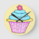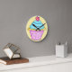 Este reloj de quequitos cuenta con un quequito azul turquesa y rosa coronado por una flor rosa. El fondo es amarillo. ¡Un gran regalo para un amante de los quequitos! Celebre un cumpleaños u otra ocasión con el torta blanca y el arte original de quequitos que es perfecto tanto para niños como para chicas, así como para adultos. Los colores son más suaves y más vivos. Personalizable completo para personalizar.