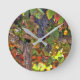 Un reloj de bonito en tiempo de cosecha con uvas y hojas de bonito. Una magnífica decoración de la región vinícola.