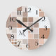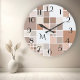 Reloj de pared moderno con tejas a cuadros en tonos tostado, beige, café y tierra marrón arenosa. Los números son un archivo independiente y se pueden eliminar si no los necesita. Y también puede personalizar o borrar el texto del monograma.