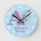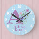 Reloj del dormitorio del niño. Reloj del dormitorio de los niños. El diseño presenta Monograma y Nombre con Flores a cada lado en un color pastel de agua. El nombre de ejemplo es Ailsa. Cambie el nombre como desee para cualquier persona con un nombre que empiece por A.