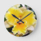 Redondo Mediano Reloj redondeado de orquídeas amarillas