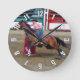 Acerca de "Carreras de barril III" - Una entrenada Cabalera pone su caballo a través de los pasos en una Carrera de Rodeo-Barrel, en esta reciente obra de arte creada por Skye Ryan-Evans ©. Ideal para cualquiera que disfrute de los temas de la Carreras barril y occidentales tanto como nosotros. Perfecto para la decoración de rancho y rodeo. No vuelvas a llegar tarde al Rodeo con este divertido reloj de pared.