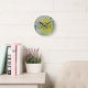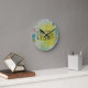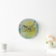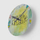 Colorido reloj mural con la palabra "Respira" en el centro. Dibujo multimedia como fondo.