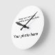 Clocks, la elección de tamaños, estilos, elegir un diseño o hacer uno propio fácilmente sin costo adicional. Añade fotos especiales o tu obra de arte, y/o texto. Elija un color de fondo o rellene toda la cara del reloj con su imagen.