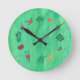 En lugar de números, son las frutas y verduras las que representan los números en este reloj de pared. Una pintura de frutas y verduras en un fondo verde mezclado, es un fresco recordatorio de comer más nutritivamente y un divertido recordatorio de comer una variedad de colores. Gracias por comprar CherylsArt en Zazzle: http://www.zazzle.com/CherylsArt*/