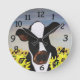 Reloj de la vaca y de pared del hogar del país de los girasoles. Decoración de la vaca, campo de los girasoles.