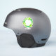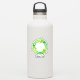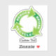 Símbolo ambiental verde, círculo con flechas y las palabras reducen, reutilizan, reciclan. Texto personalizado.