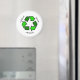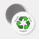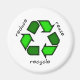 Reducir - Reutilizar - Reciclar - imán blanco con texto negro y símbolo de reciclaje verde.