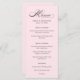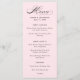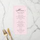 El elegante menú boda presenta una caligrafía moderna y giratoria en negro sobre un fondo rosa.