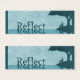 Dibujo texturizado de color verde-azul con la silueta de un hombre sentado bajo un árbol junto a un estanque contemplando. La palabra "Reflejar" descansa en la superficie del lago, el texto y las sombras reflejadas en el agua perfectamente paralizada.