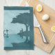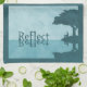 Dibujo texturizado de color verde-azul con la silueta de un hombre sentado bajo un árbol junto a un estanque contemplando. La palabra "Reflejar" descansa en la superficie del lago, el texto y las sombras reflejadas en el agua perfectamente paralizada.
