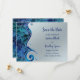 El texto de estas "reflexiones" azules y plateadas ahorran la tarjeta de boda de fecha es totalmente personalizable. El diseño de la tarjeta está inspirado en los trópicos, el agua, las conchas de paua, las olas y las reflexiones. Perfecto para una boda en la playa o en el destino o para un boda con una temática de color azul y plata.