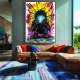 Esta obra de arte surrealista, una obra poderosa que hace reflexionar sobre la psique fracturada, representa a una figura con una cara rajada y brillante, como si su identidad se estuviera desvaneciendo en mil reflexiones. Con colores de neón audaces, brochas caóticas y emoción cruda, esta pieza encarna la introspección, el conflicto interior y la transformación. Ideal para los aficionados al arte callejero expresivo, al surrealismo emocional y a las pinturas digitales que incitan a la reflexión, este diseño resuena con aquellos que abrazan la belleza de la imperfección y el autodescubrimiento.