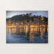 Desafíe su rompecabezas que hace habilidades con este tiro de las reflexiones en el agua del pueblo clásico del puerto de Portofino, Italia.